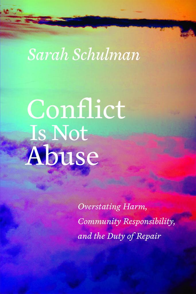 I first encountered Sarah Schulman’s Conflict is not Abuse: Overstating Harm, Community Responsibility, and the Duty of Repair in the theory section of Giovanni’s Room in Philadelphia. I was working through accepting my own trauma at the time, and the idea that the toxic interpersonal relationships I had been in could be labeled simply “conflict” felt, uh, threatening. I ended up shoving the book back on the shelf, buying a cute little anthology instead, and spent the next month or two sending the cover of Schulman’s book to friends with the caption “ever felt gaslit by a book title before?” (I know)